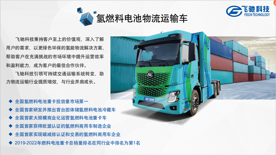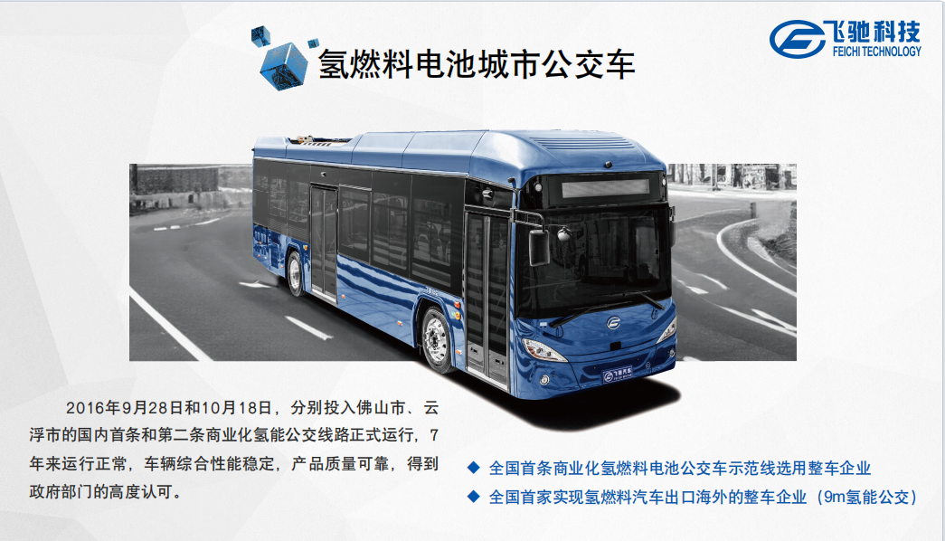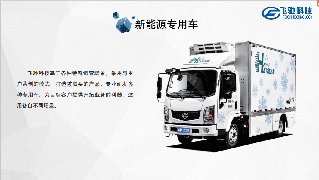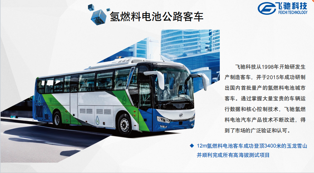 公司简介:佛山市飞驰汽车科技有限公司源于1971年,总部位于广东佛山,是集燃料电池汽车研发、生产、销售于一体的新能源整车企业,致力于为社会提供安全、低碳、可持续发展的绿色出行解 决方案。目前公司具备传统能源、新能源商用车整车生产资质,产品涵盖大中型客车、轻中重型卡车、专用车、特种车辆等,在国内处于行业领先地位。近年来,凭借领先的氢能技术研发能力、卓越的产品质量、完善的售后服务体系以及大规模燃料电池汽车示范运营和产业化 推进,已成为国内燃料电池汽车行业领军企业之一。随着“碳达峰、碳中和”目标提出,氢能被列入国家“十四 五”产业发展规划,飞驰科技将迎来新一轮高速发展。