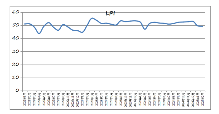 中国物流与采购联合会发布的2025年2月份中国物流业景气指数为49.3%,较上月回落0.4个百分点。受季节性因素影响,本月工作日较少,指数有所回落,随着节后复工有序推进,各地区重大项目集中开工,产业链上下游平稳复苏,2月下旬实物量指标明显上升。
