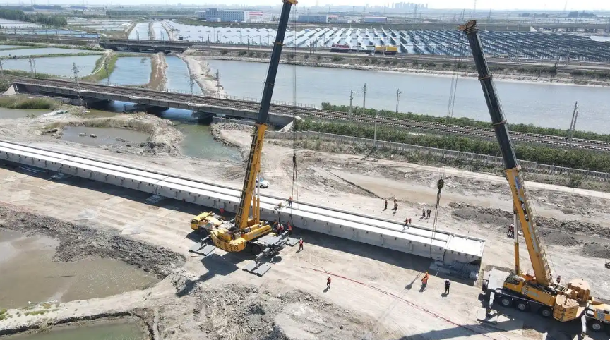 5月17日,随着最后一片T梁落梁就位,由中铁六局天津公司负责施工的唐山曹妃甸区港前物流有限公司铁路专用线工程(以下简称港前物流专用线工程)八队中桥架梁施工顺利完成。这一关键节点的实现,为早日实现工程全线贯通奠定了基础,将有效助力曹妃甸区打造绿色高效物流运行体系,促进港口、仓储、物流产业高质量发展。