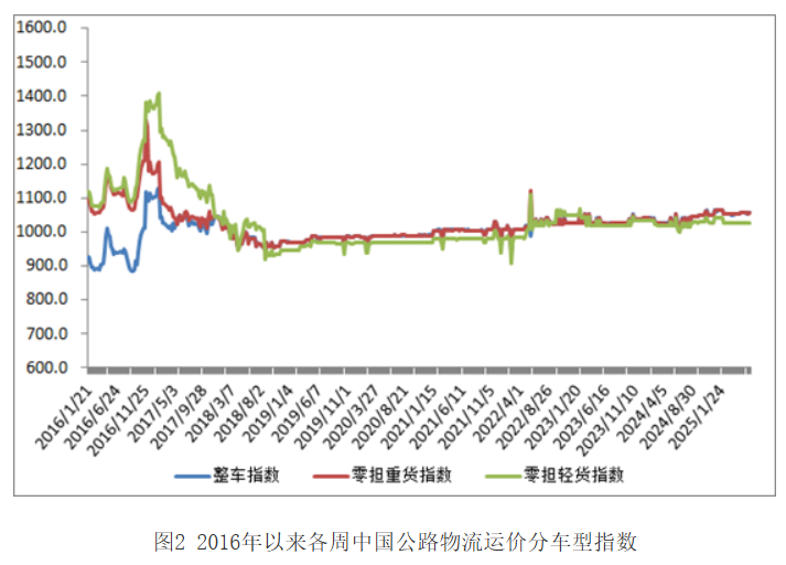 分车型看,各车型指数环比涨跌互现。其中,整车指数为1055.95点,比上周回升0.05%;零担轻货指数为1025.79点,比上周回落0.03%;零担重货指数为1056.60点,比上周回升0.14%。