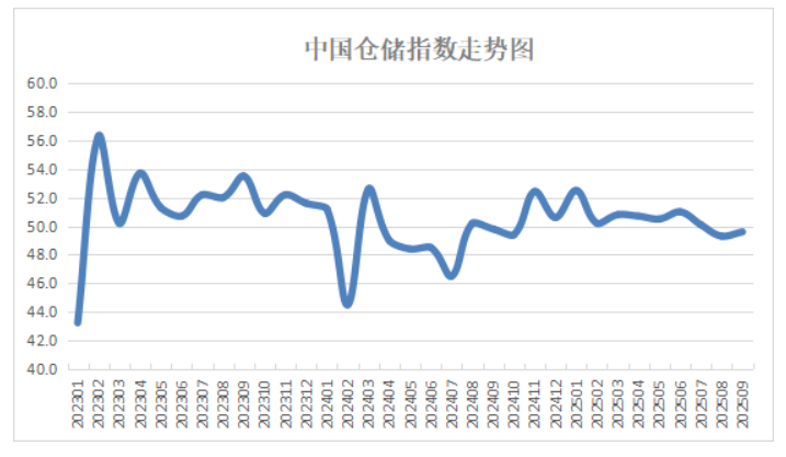 中国物流与采购联合会和中储发展股份有限公司联合调查的中国仓储指数,2025年9月份为49.6%,较上月回升0.3个百分点,新订单指数重回扩张区间,期末库存指数回落至50%以下,显示仓储业务活动有所回升,行业运行向好恢复,整体仍处于去库存周期,企业备货意愿较为谨慎。具体来看,本月指数呈现以下特征: