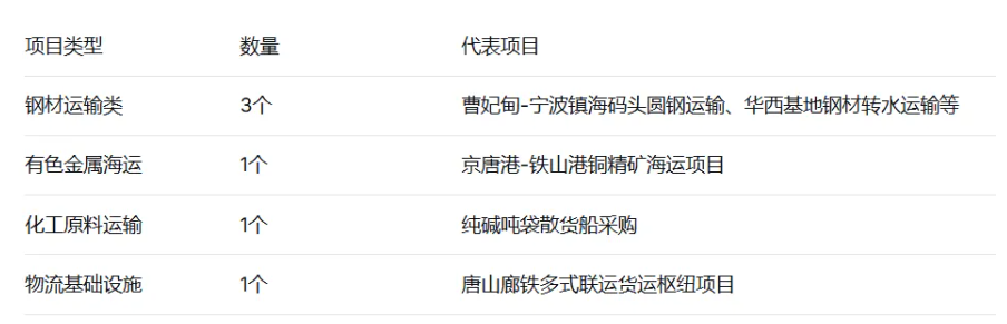 分析:河北华西特种钢铁有限公司在钢材水运方面需求持续活跃;中铝物流在有色金属海运领域布局稳定。