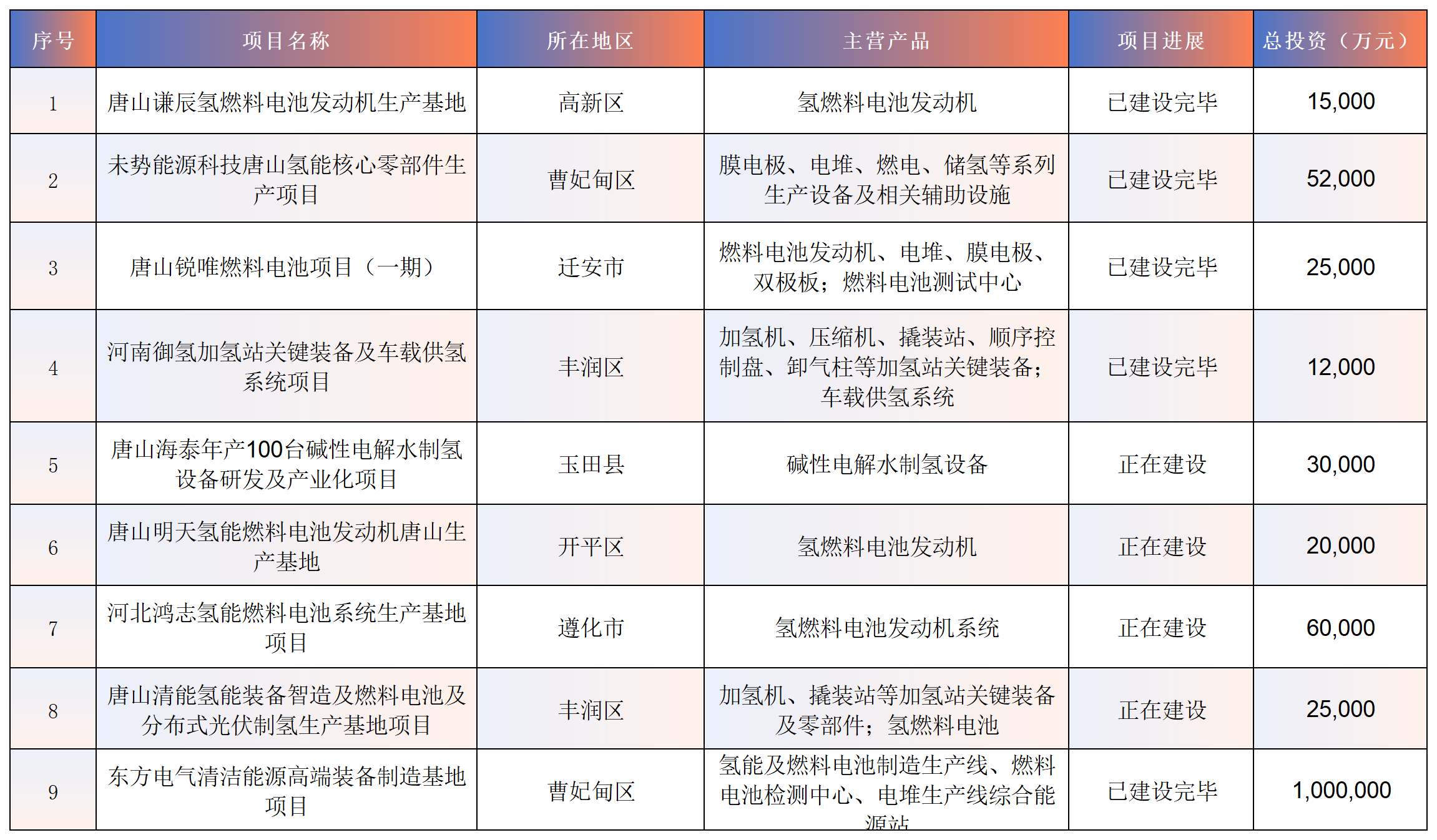 盘点唐山氢能产业相关项目建设情况分析 2026/1/31