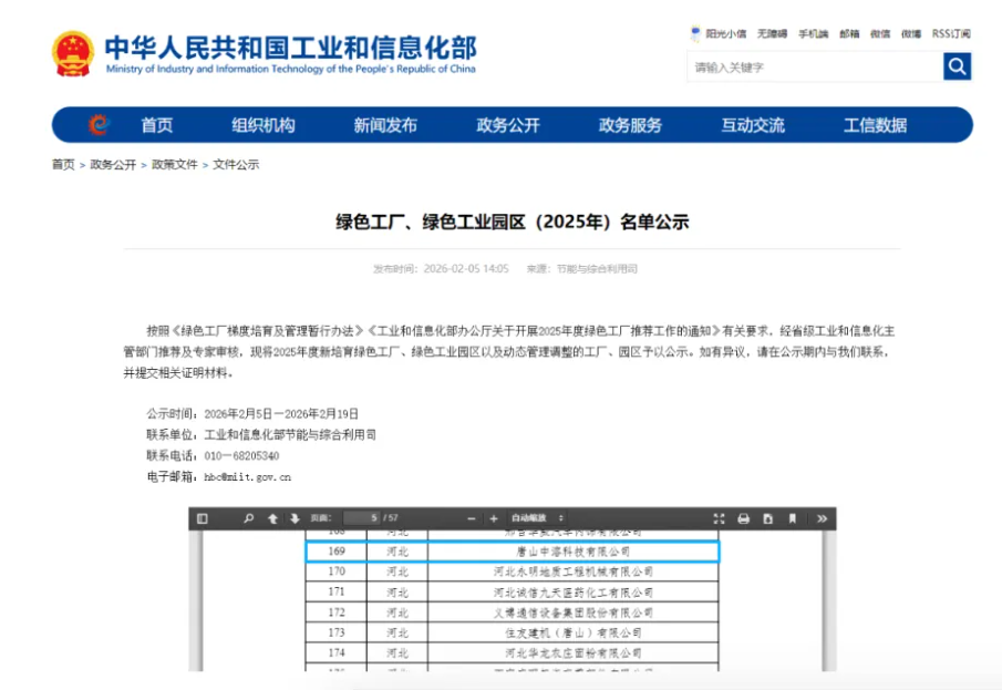 在全球工业绿色转型的大潮中,唐山中溶再次交出高分答卷!近日,国家工业和信息化部发布了2025年度绿色制造名单,中溶科技凭借全产业链的绿色实践,正式获批“国家级绿色工厂”。这一里程碑式的成就,标志着在打造“零碳工厂”的道路上实现了历史性跨越,为绿色制造树立了崭新标杆。