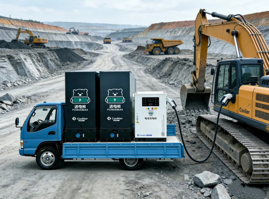 它打破电网束缚,实现无界机动调度。无论是零碳工地、矿山机械、抢险救援,还是高速服务区应急补能,“送电熊”都能随叫随到。它可梯次利用重卡动力电池,提供282-600kWh甚至更大的灵活容量组合,既能输出直流快充,也能提供交流供电,真正实现了“电不一定要用电网输送,也可以用送电熊”。