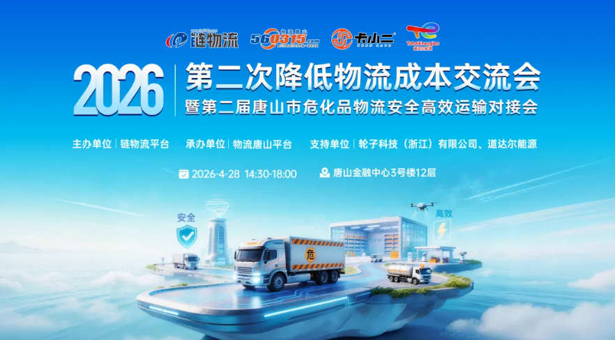 为深入贯彻落实国家关于降低全社会物流成本的决策部署,推动唐山市危化品物流行业高质量发展,2026年第二次降低物流成本交流会暨第二届唐山市危化品物流安全高效运输对接会,将于2026年4月28日14:30-17:30在唐山金融中心3号楼12层隆重召开。现诚邀全市及周边地区危化品生产、运输、仓储及相关服务企业踊跃参会。